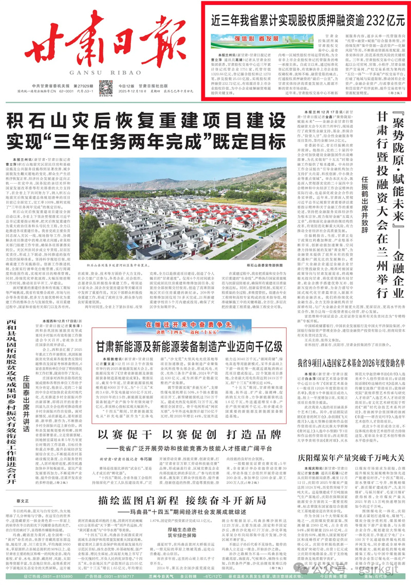 (新甘肃客户端兰州讯(新甘肃·甘肃日报记者曹立萍 通讯员高婧)记者从博鱼网页版获悉,甘肃股权交易中心近三年累计登记托管企业1751家,托管市值1320.66亿元,登记撮合股权转让1270笔,涉及股数25.03亿股,实现股权质押融资232.72亿元,有效激活非上市企业股权价值,为中小企业破解融资难题提供关键支撑。